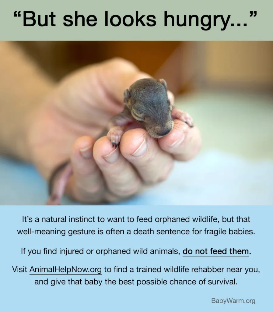 Please don’t ever feed an orphaned squirrel (or any other orphaned baby you may find).